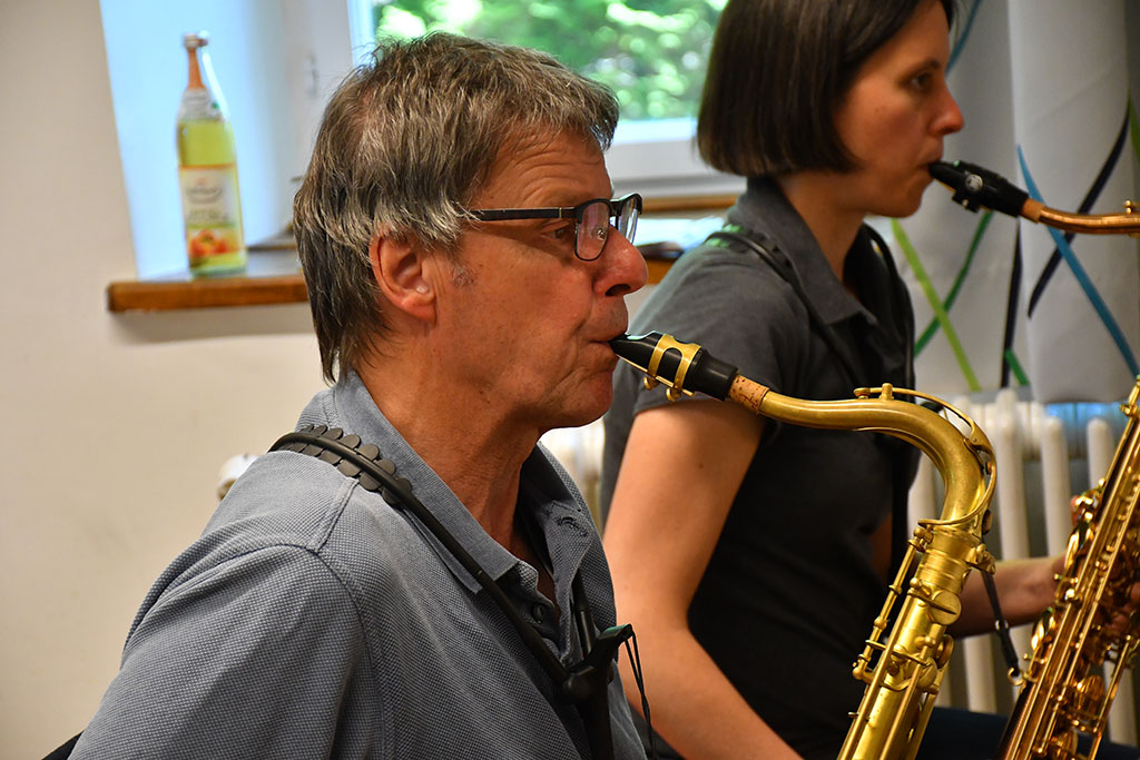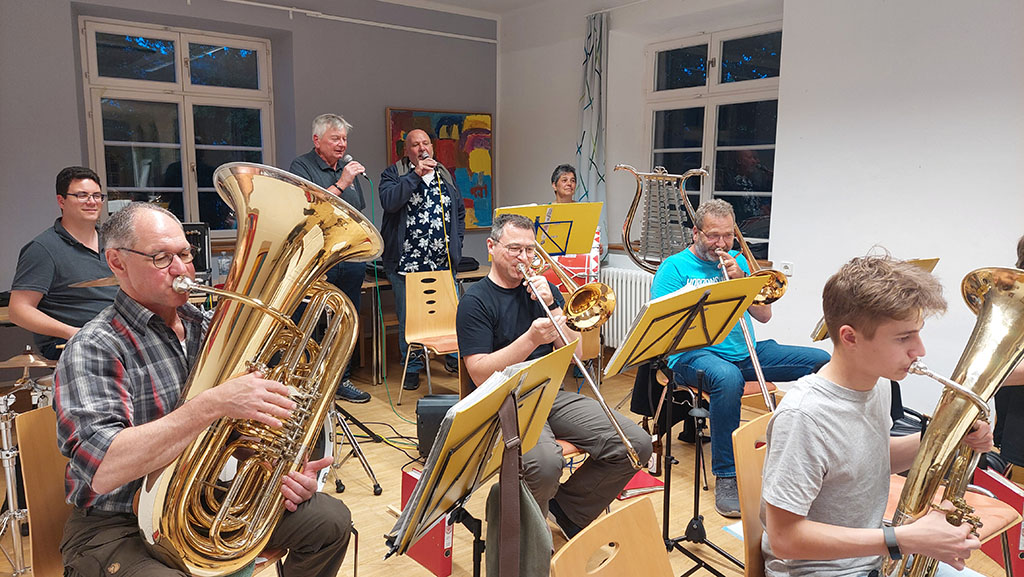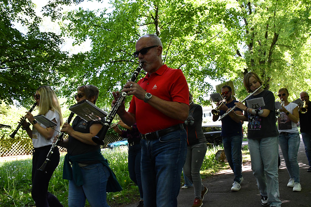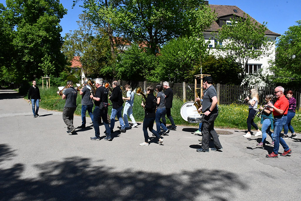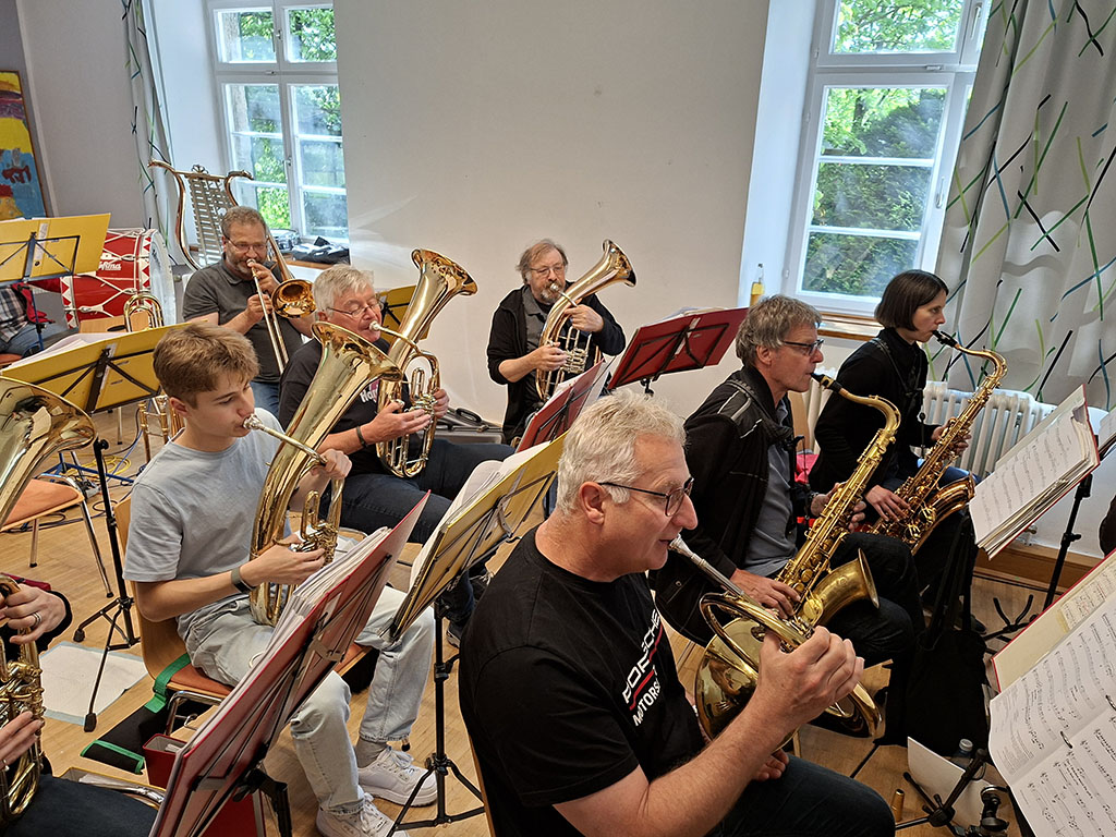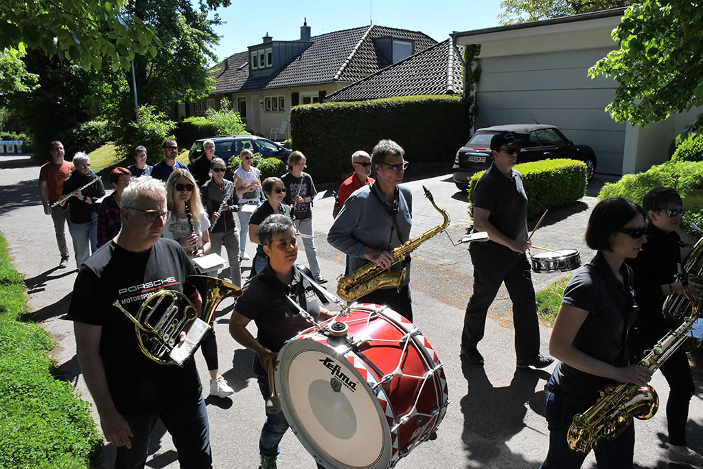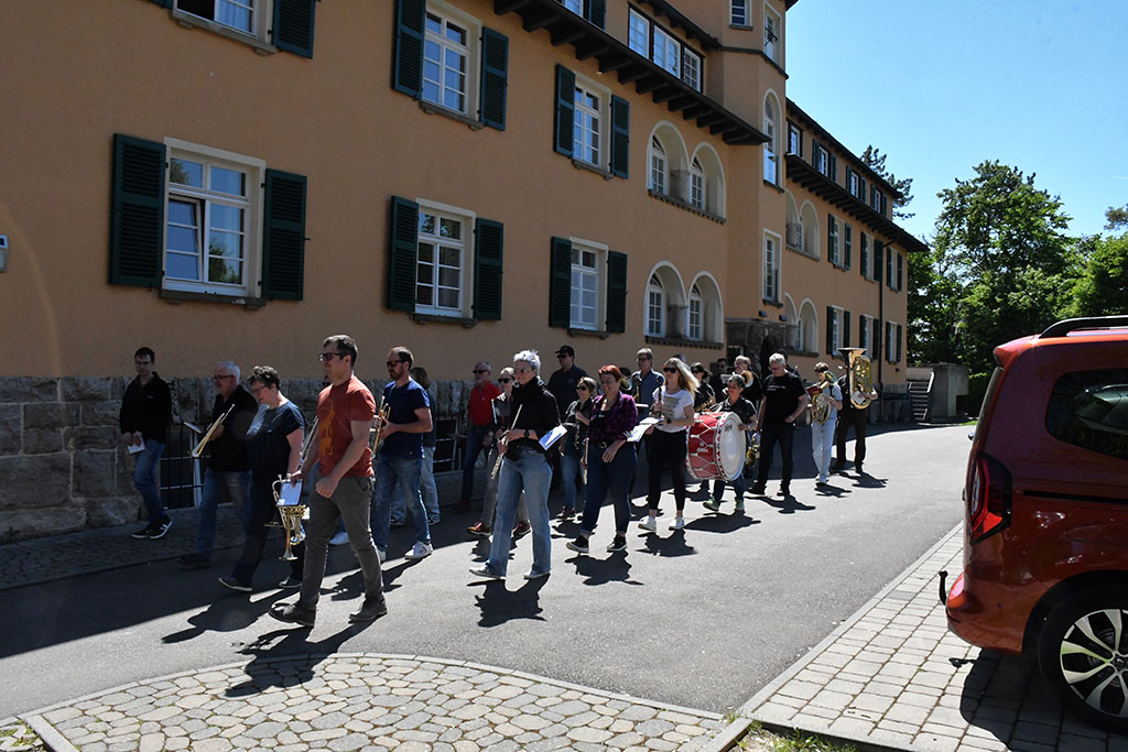 Am Samstag, dem 10. Mai begann der Tag mit einem gemeinsamen Frühstück in entspannter Atmosphäre. Bereits um 10:00 Uhr stand die nächste Probeeinheit auf dem Programm. Bis 12:00 Uhr wurden bekannte Stücke wie „Wackelkontakt“, „Bella Napoli“ und der allseits beliebte „Von Freund zu Freund“ geprobt und an den noch schwammigen Passagen gefeilt. Die Mittagssonne in der Pause gab neue Energie für die anstehende Marschprobe. Bei dieser marschierte die Musikkapelle erst ohne Instrumente, dann musizierend durch die Gassen Schwäbisch Halls und erfreuten zahlreiche Passanten mit ihren Klängen. Nach der wohlverdienten Kaffee- und Kuchen-Pause auf der Terrasse begann der letzte Probeblock für diesen Tag, ehe es ein weiteres schmackhaftes Abendessen gab.