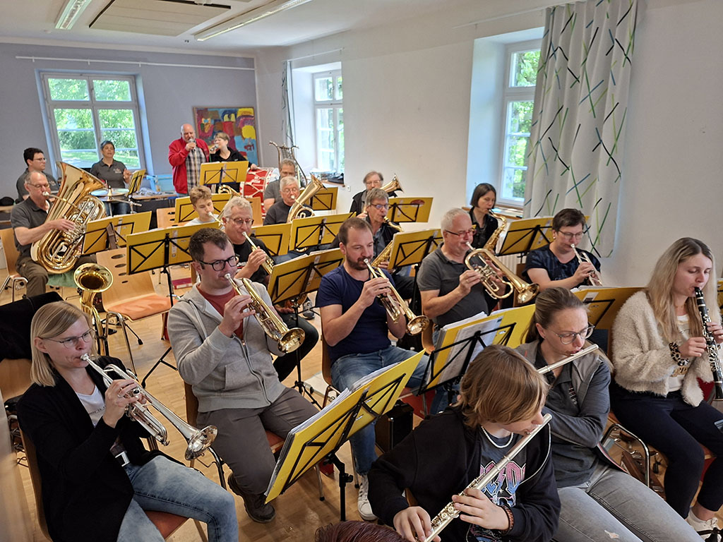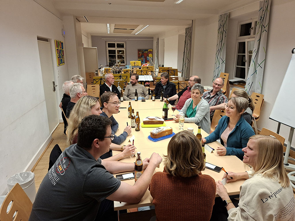 Am Sonntagmorgen nach dem die Zimmer geräumt und das Frühstück verspeist war, stand von 10 bis 12:00 Uhr noch eine letzte Probe auf dem Programm. Vorstand Alexander Wörner ergriff danach das Wort und bedankte sich bei allen Musikerinnen und Musikern recht herzlich für ihr Engagement und ihren Probeeifer. Er zeigte sich erfreut über die gute Stimmung während der letzten 3 Tage und stellt fest, dass es ein gelungenes Ereignis war, dass allen Teilnehmern große Freude und Spaß bereitet hat. Das Probeziel galt den Auftritten für die Heimattage in Waldstetten und Oberwittstadt, sowie zum besseren Kennenlernen der Kapelle für die Projektteilnehmer „Musizieren auf Zeit“. Anlässlich des Muttertags gab es zum Abschluss des Probewochenendes noch ein Gläschen Sekt. Nach dem Mittagessen trat die Kapelle gegen 13:00 Uhr die Heimreise an und freut sich schon wieder auf das nächste Probenwochenende 🙂