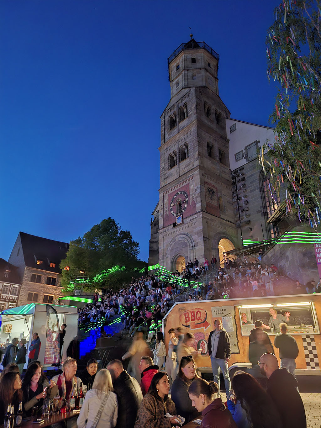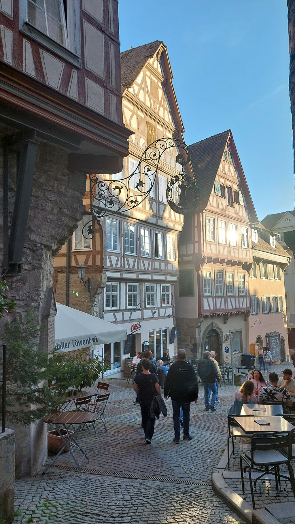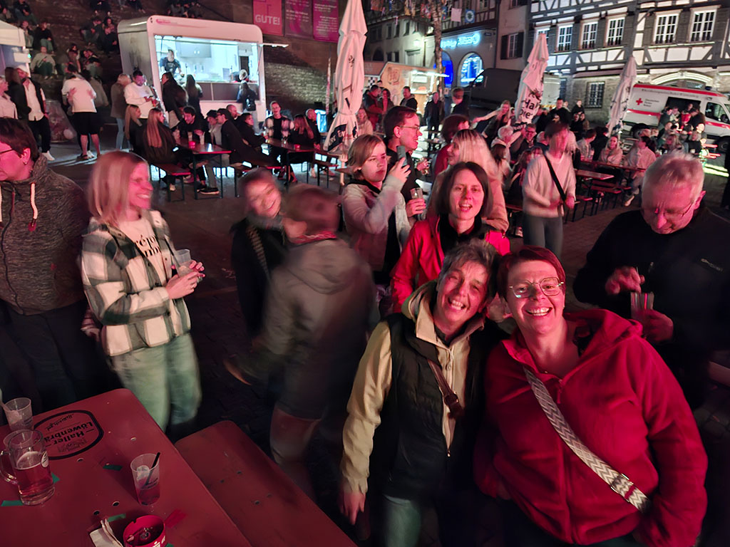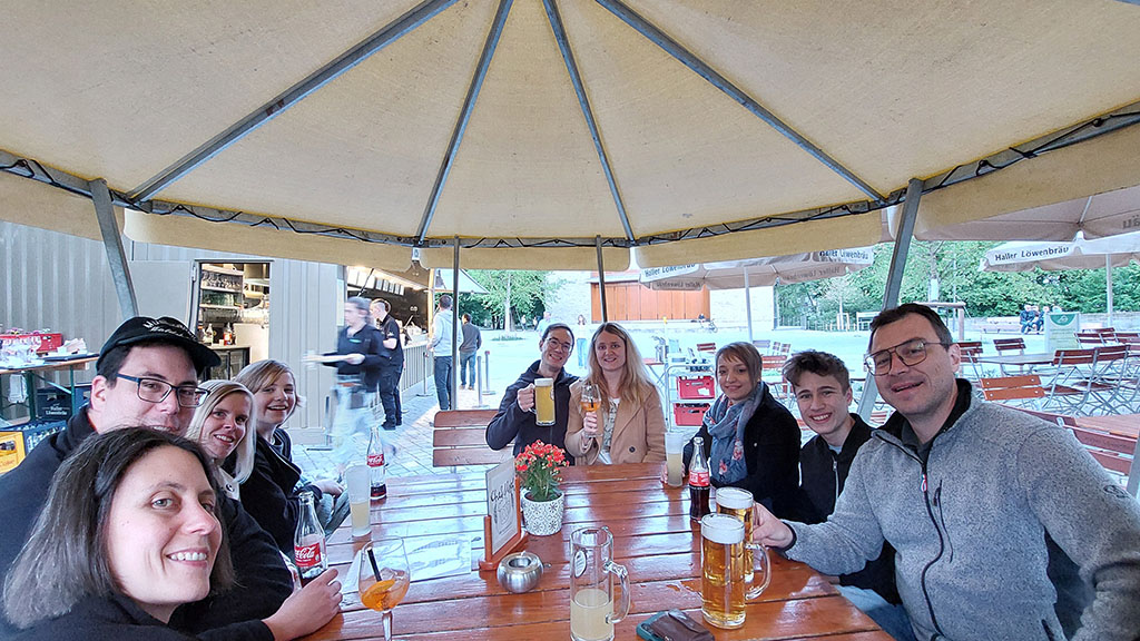 Gegen 19.30 Uhr brach die bunt gewürfelte Gruppe aus Jung & Alt zu einem gemütlichen Spaziergang in die Innenstadt Schwäbisch Halls auf. In einem urigen Biergarten unter großen Bäumen ließen sich die Abendstunden in geselliger Runde und guten Gesprächen gut aushalten. Auf dem Marktplatz fand zudem eine Veranstaltung mit Livemusik und verschiedenen Imbissständen statt. Die jüngere Generation ließ sich von der Partystimmung mitreisen und feierte noch ein bisschen zu den DJ Klassikern. Erst gegen Mitternacht kehrten alle zur Jugendherbergen zurück, wo der Tag bei einem letzten Zusammensitzen im Gemeinschaftsraum zu Ende ging.