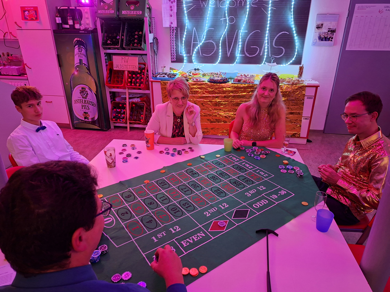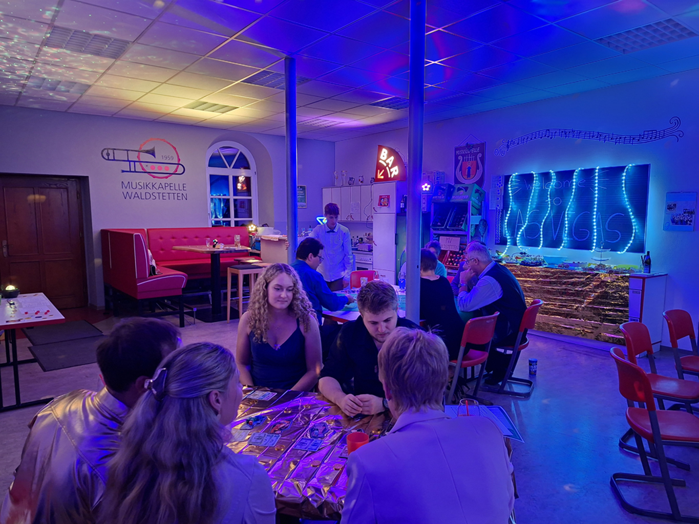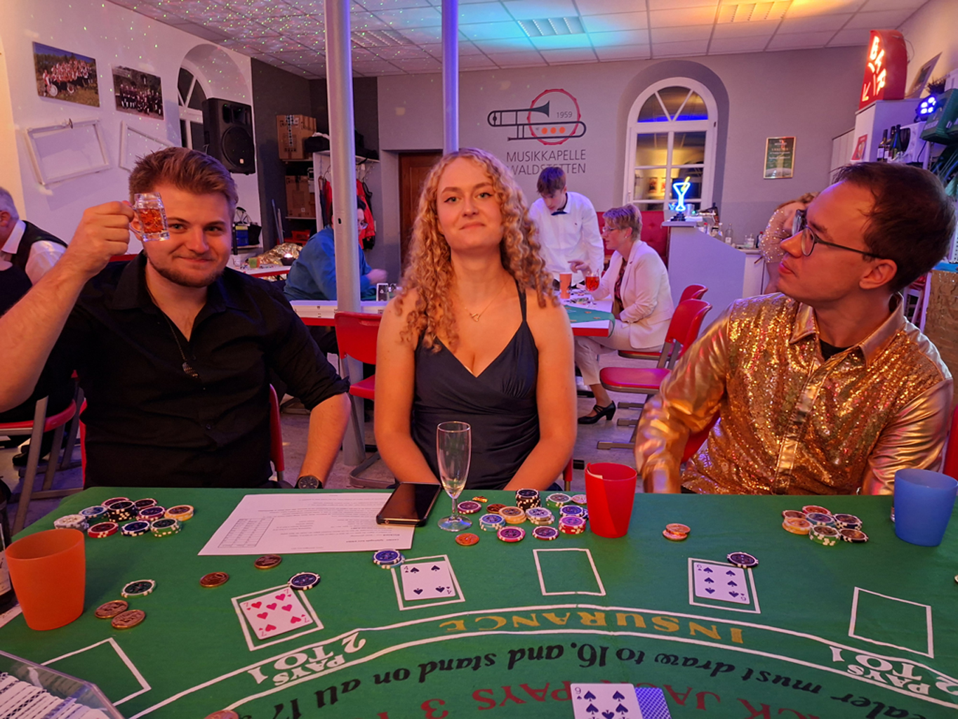 Am 27. September verwandelte sich der Proberaum der Musikkapelle Waldstetten kurzerhand in ein hochkarätiges Casino – inklusive glamourösem Empfang mit Sektglas in der Hand und persönlicher Eintrittskarte für das Casino. Diese konnte dann gegen eine Auswahl an Casino-Chips eingetauscht werden, mit denen die Spiele bestritten wurden. Jackpot gleich am Anfang.