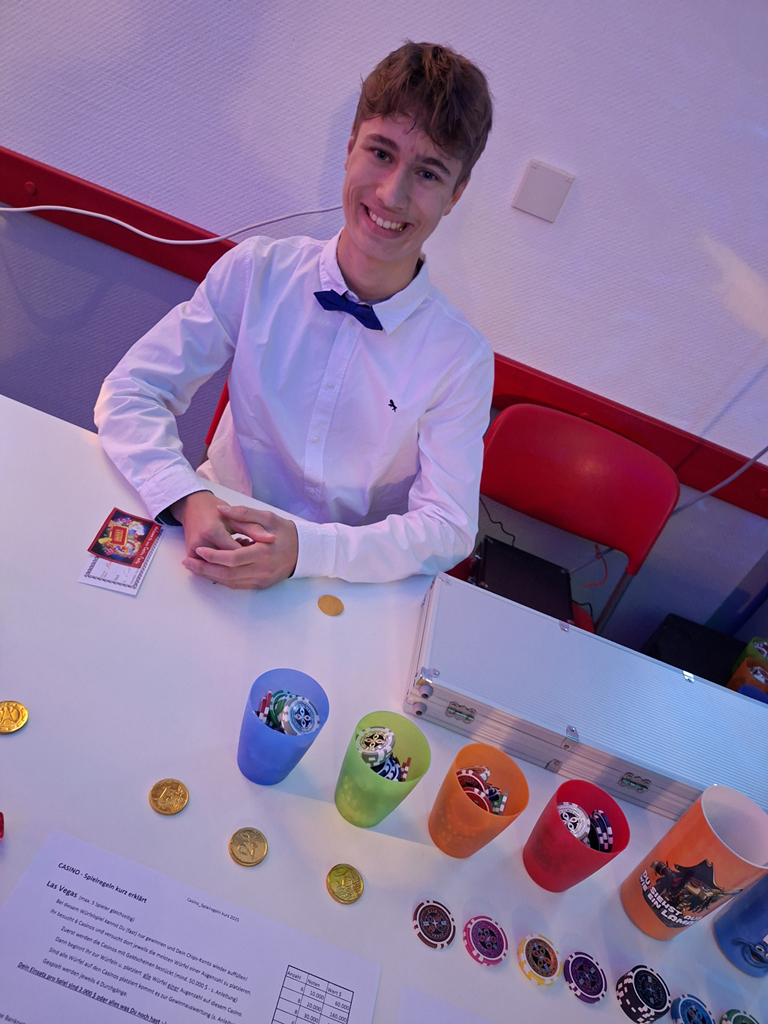 Nach rund drei Stunden Spielzeit wurde ein Zwischenstand der gesammelten Casino-Chips ermittelt. Die drei erfolgreichsten Spieler erhielten kleine Geschenke als Belohnung. Nach einer kurzen Stärkung ging es weiter – bereit, in den nächsten Runden wieder voll konzentriert die richtigen Entscheidungen zu treffen… oder es zumindest überzeugend aussehen zu lassen.